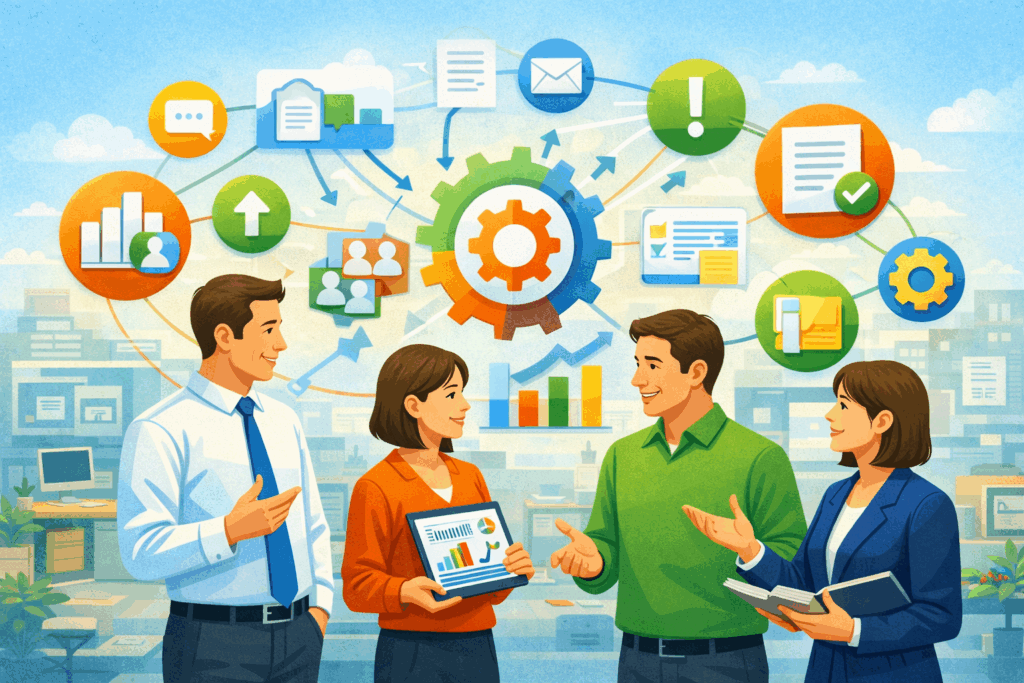 中小企業にとって重要なのは、情報共有を「個々の気配り」に任せないことです。どこに、何を、どう残し、どう使うかを仕組みとして整えることで、社内連携は安定し、改善も継続しやすくなります。情報共有が整うことは、組織が強くなることでもあります。