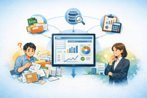 散在する情報を見える化し、活用につなげるデータ管理の進め方を解説。中小企業がDXを活用して情報の一元管理、業務効率化、経営判断の精度向上を実現する方法を紹介します。
